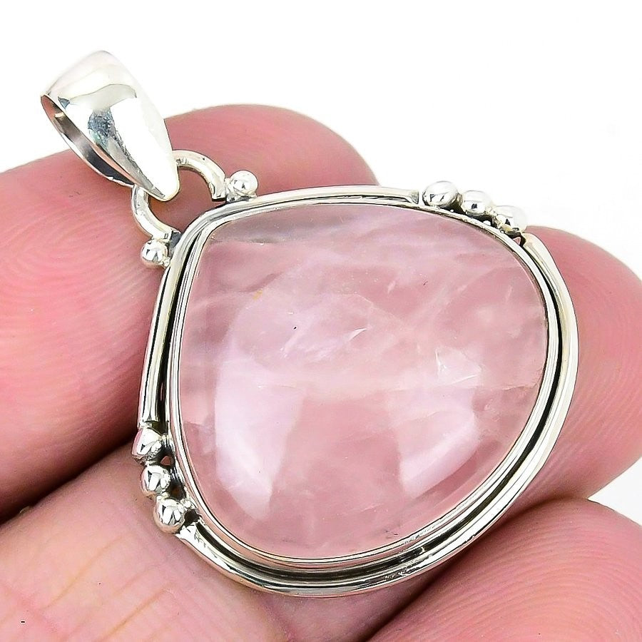 Rose Quartz Gemstone 925 Solid Silver Channel Set Ethnic Mother Pendant Jewelry