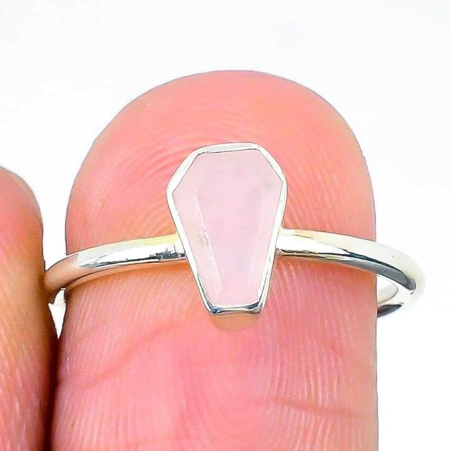 Rose Quartz Gemstone 925 Sterling Silver Band Best Friend Gift Ring Jewelry US 6