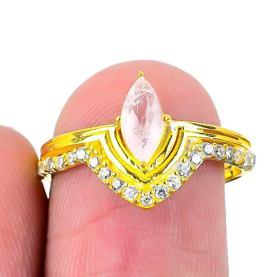 Rose Quartz Gemstone 925 Sterling Silver Statement Elegant Ring Jewelry Size 8