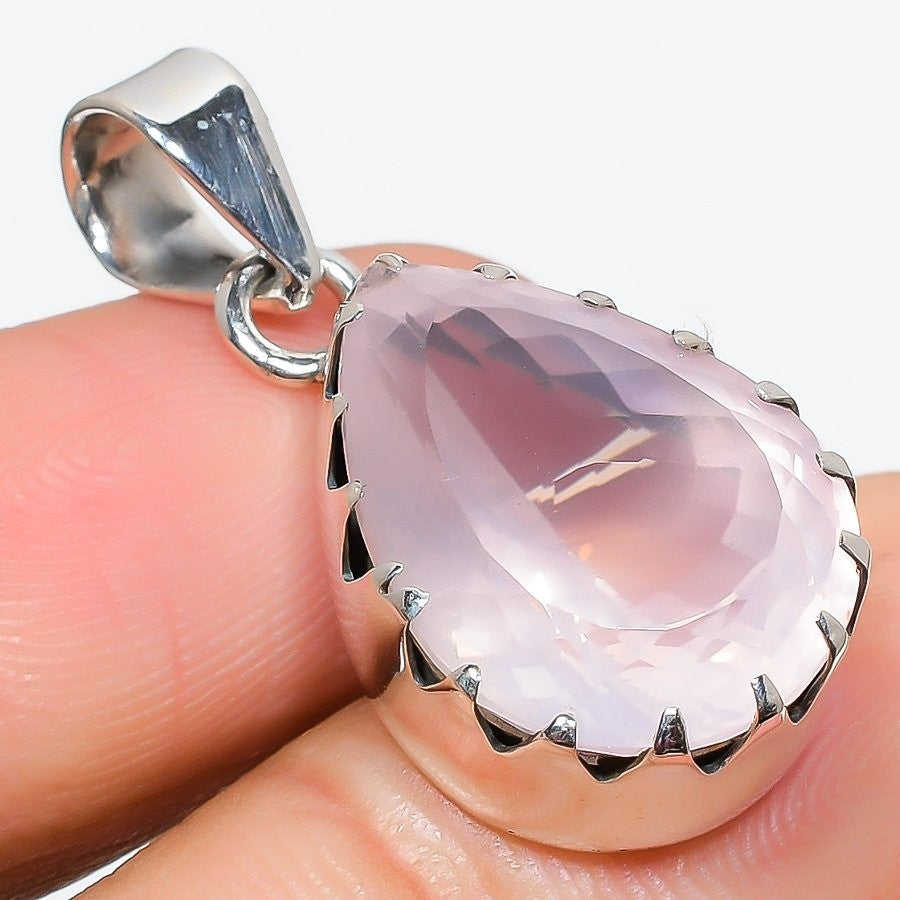 Rose Quartz Gemstone 925 Sterling Silver Wedding Daughter Anniversary Pendant