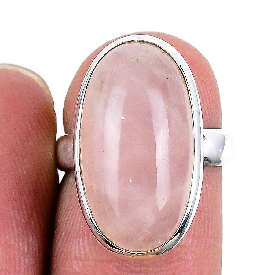 Rose Quartz Gemstone Anniversary Statement Wedding Ring Sterling Silver US 5.5