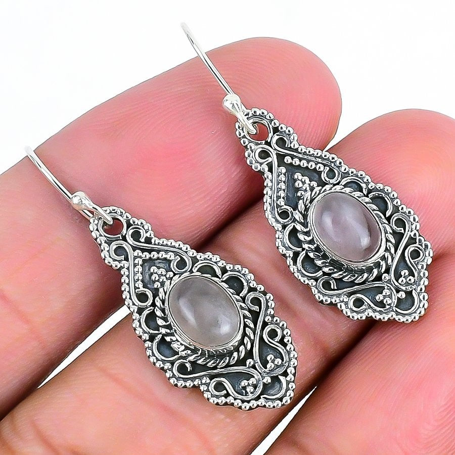 Rose Quartz Gemstone Daughters Day New Drop Dangle Hook Earrings Sterling Silver