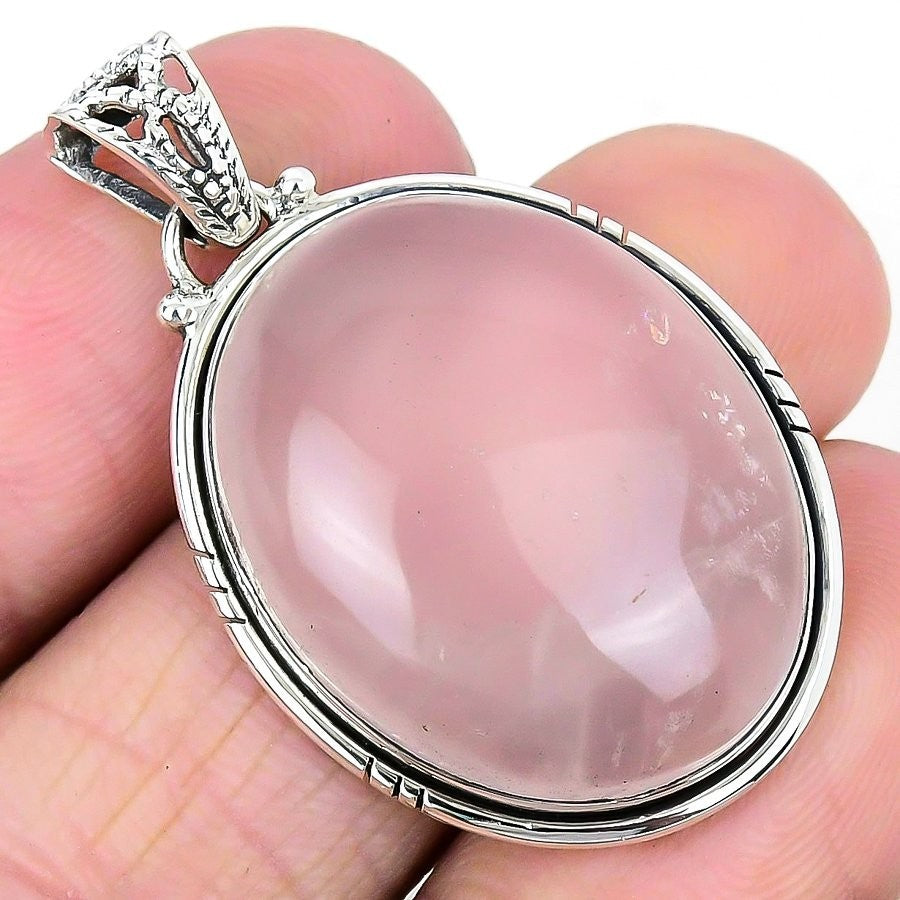 Rose Quartz Gemstone Heart Chakra Sister Unique Boho Pendant Jewelry 925 Silver