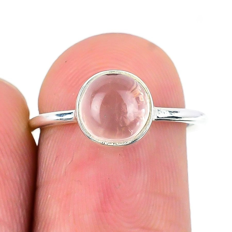 Rose Quartz Gemstone Solid Silver Sisters Day Statement Elegant Trendy Ring US 6