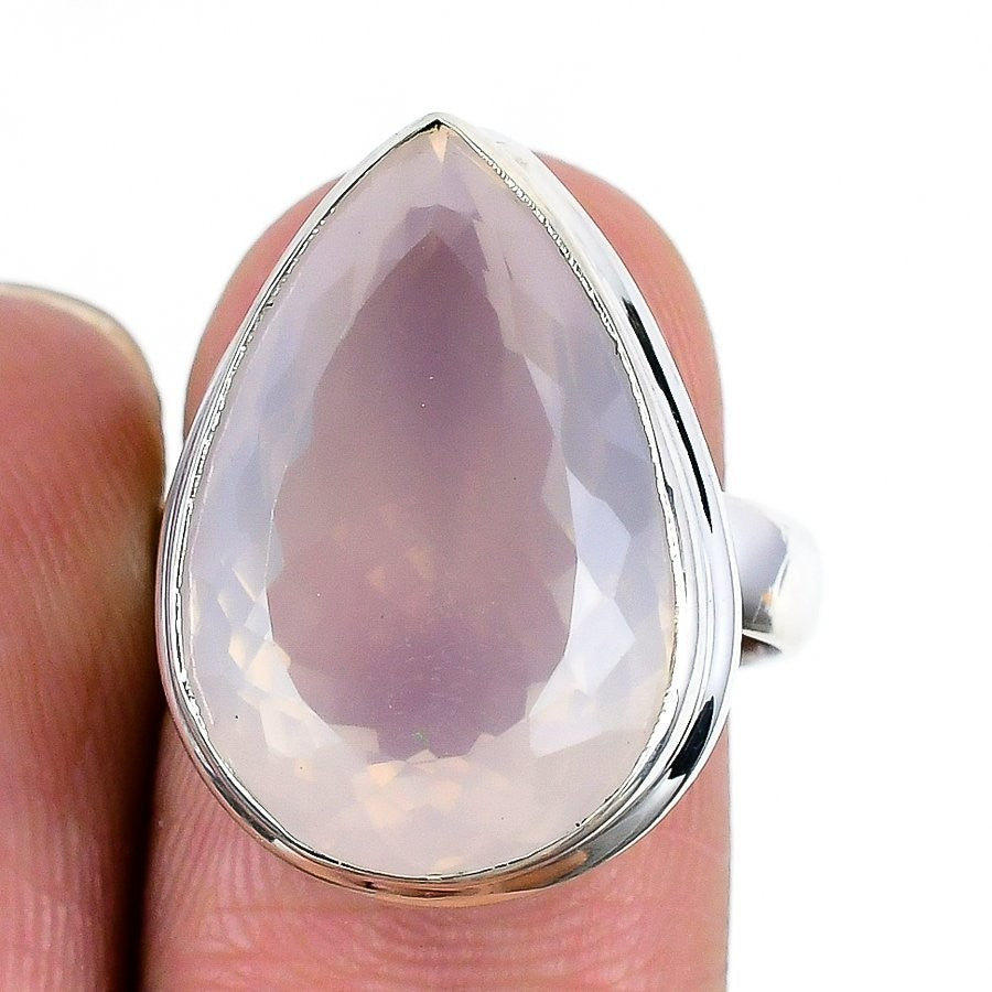 Rose Quartz Gemstone Unique Bezel Wife Statement Ring Size 8 925 Sterling Silver