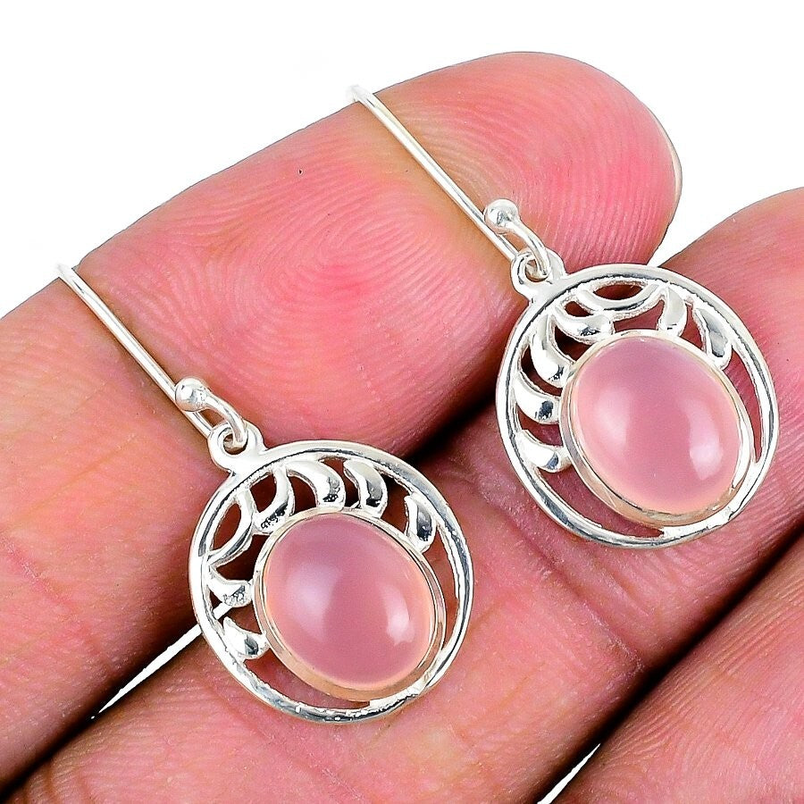 Rose Quartz Stone 925 Silver Anniversary Dangle Drop Daughter Earrings Jewelry