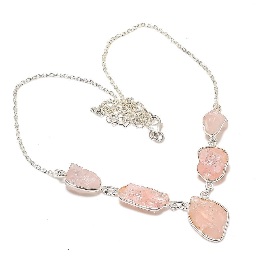 Rose Quartz Stone 925 Silver Artisan Elegant Boho Chain Heart Chakra Necklace
