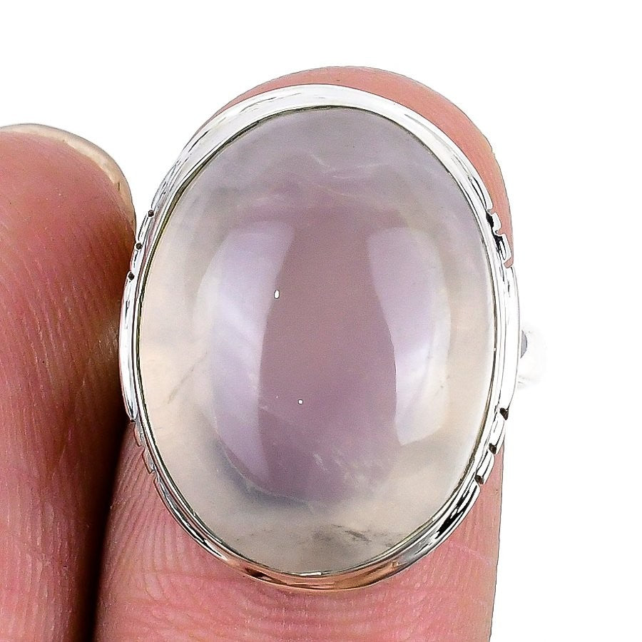 Rose Quartz Stone 925 Silver Bezel Statement Heart Chakra Ring Jewelry Size 6.5