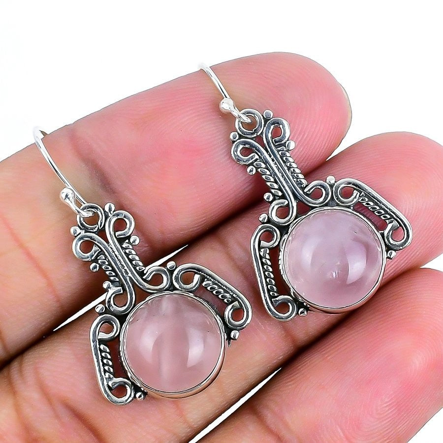 Rose Quartz Stone 925 Silver Handcrafted Dangling Engagement Birthday Earrings