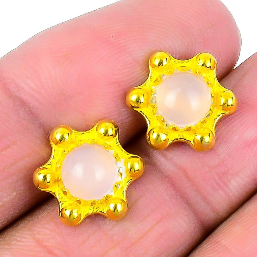 Rose Quartz Stone 925 Solid Silver Birthday Handmade Stud Post Sister Earrings