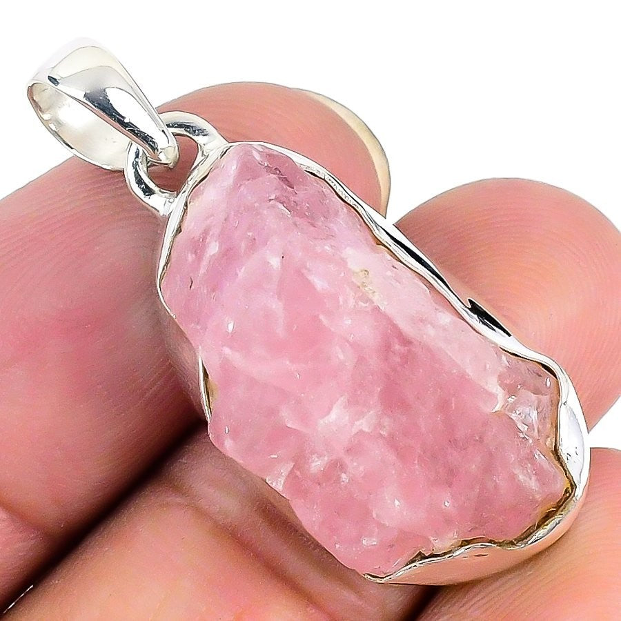 Rose Quartz Stone 925 Sterling Silver Bezel Sister Handcrafted Pendant Jewelry