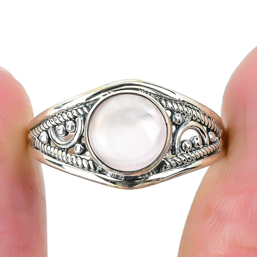Rose Quartz Stone Solid Silver Cluster Sister Heart Chakra Ring Jewelry Size 9.5