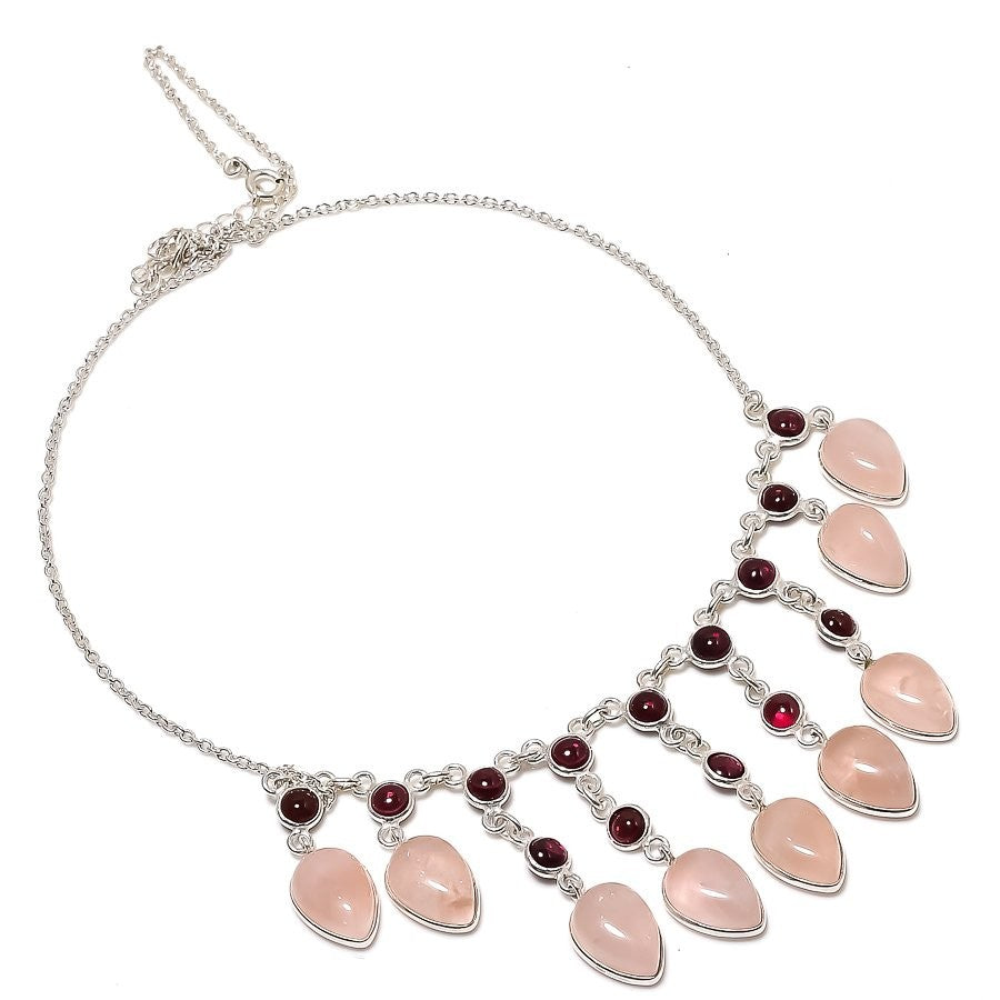 Rose Quartz Stone Solid Silver Unique Engagement Chain Birthday Sister Necklace