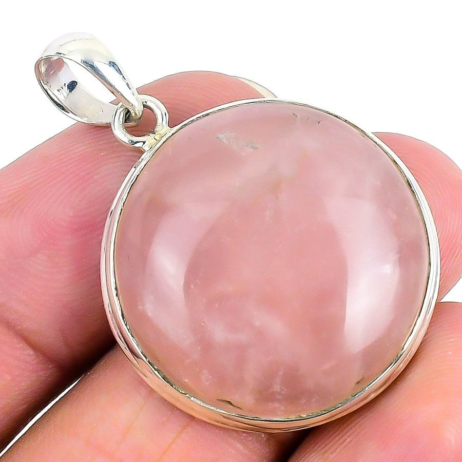 Rose Quartz Stone Solid Sterling Silver Bezel Wedding Engagement Mother Pendant