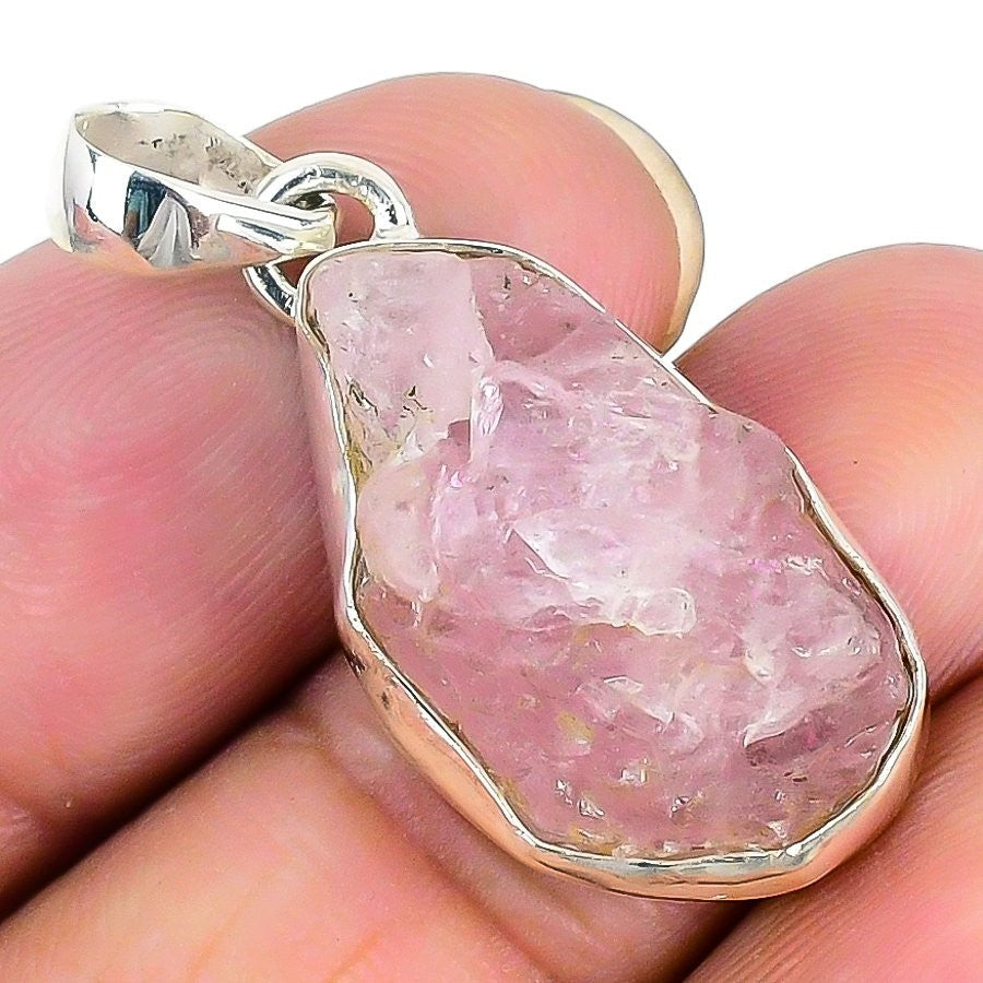 Rose Quartz Stone Unique Daughter Gift Sister Bezel Pendant Jewelry Solid Silver