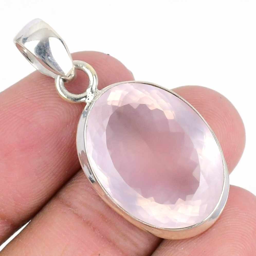 Rosequartz Druzy Gemstone Anniversary Birthday Sister Pendant Jewelry 925 Silver