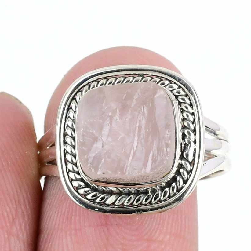 Rosequartz Druzy Stone Birthday Cluster Wife Ring Jewelry Size 8 Sterling Silver