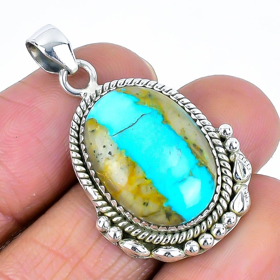Royston Turquoise Gemstone Boho Sister Anniversary New Pendant 925 Solid Silver