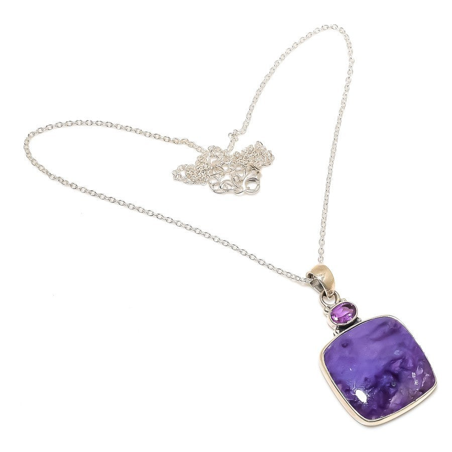 Russian Charoite Gemstone Daughters Day Chain Sister Necklace Sterling Silver