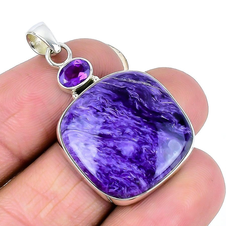 Russian Charoite Stone 925 Silver Artisan Sister Birthday Trendy Pendant Jewelry