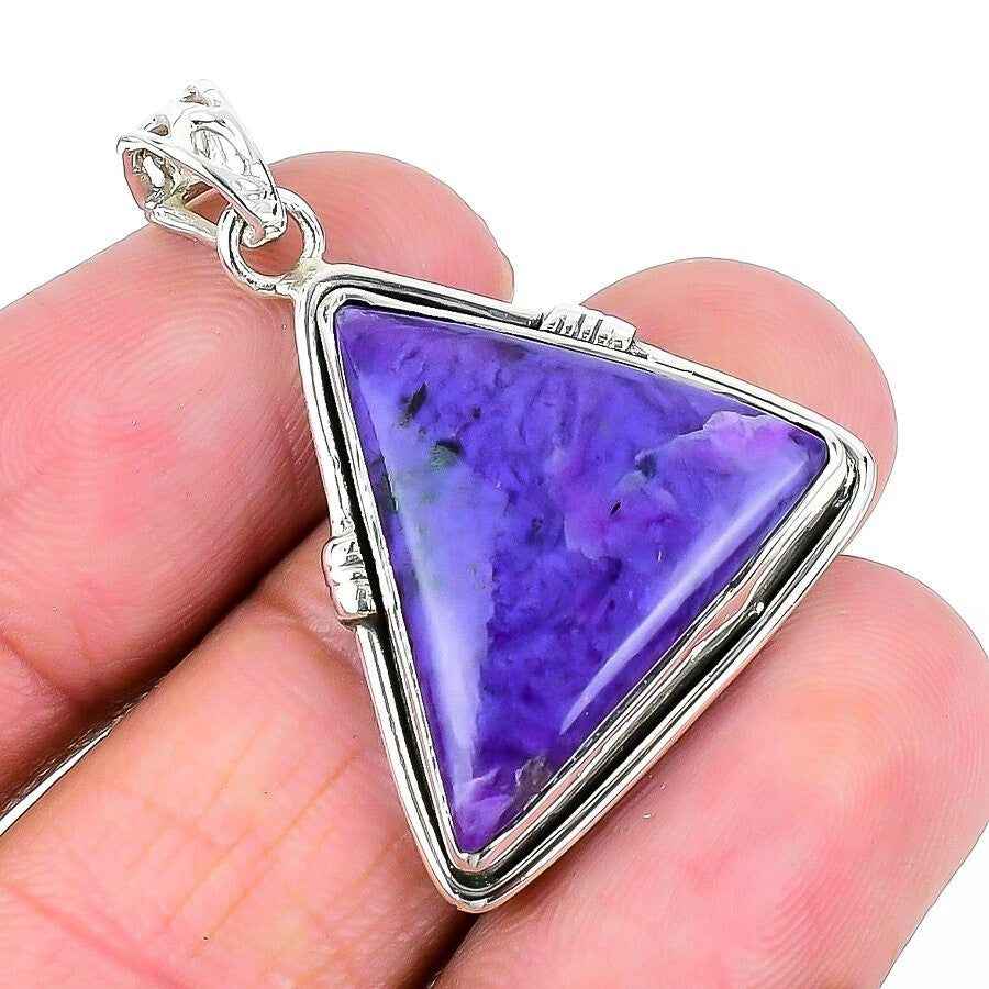 Russian Charoite Stone Sterling Silver Handcrafted Sister Wedding Boho Pendant