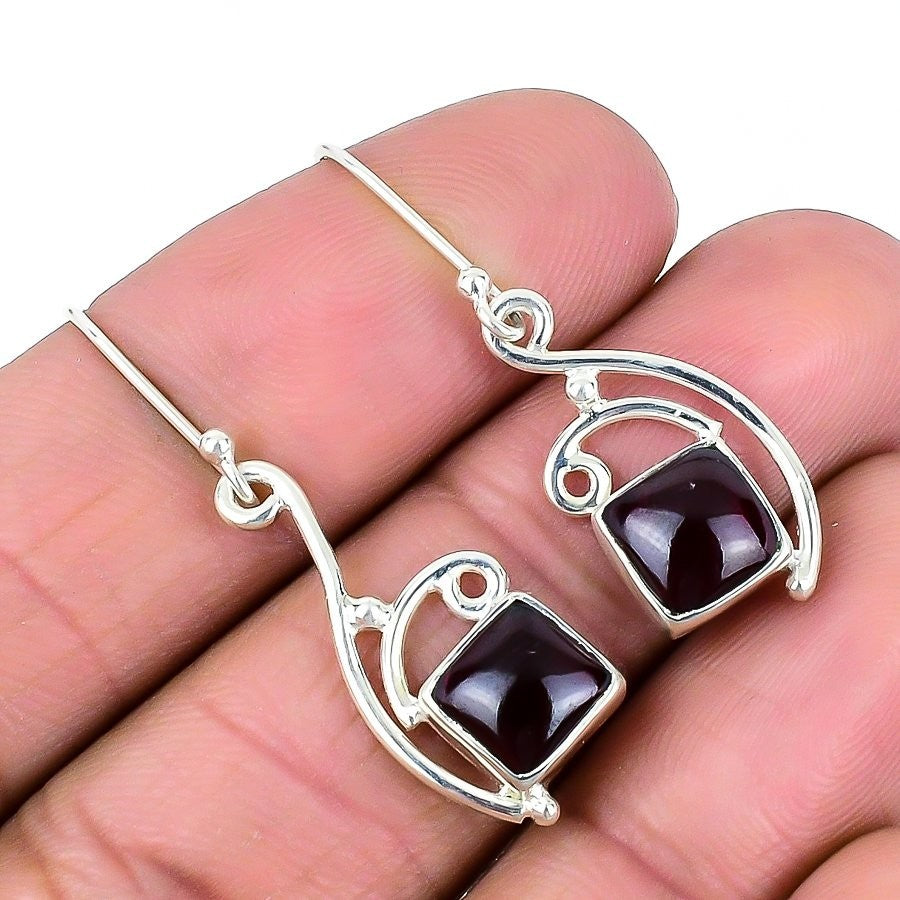 Sacral Chakra Hessonite Garnet Stone Solid Sterling Silver Hook Drop Earrings