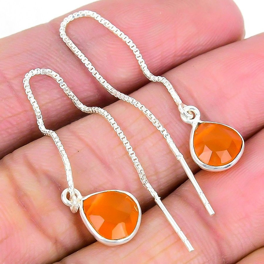 Sacral Chakra Orange Carnelian Stone Solid Silver Dangle Sister Earrings Jewelry