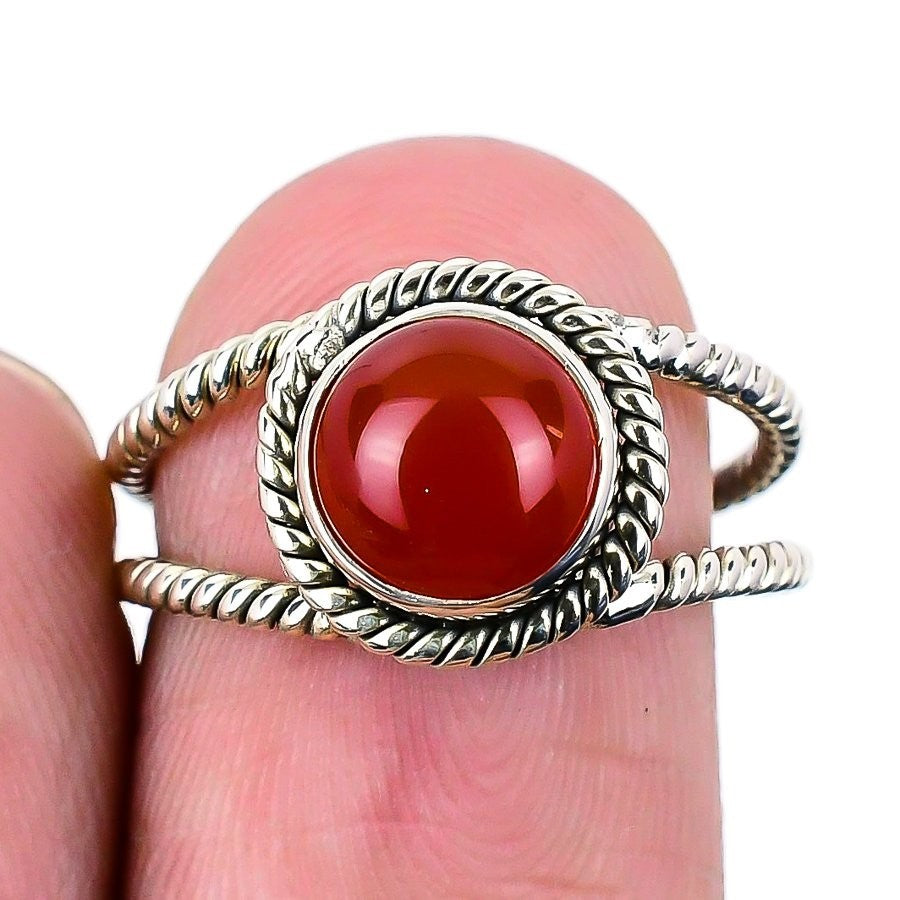 Sacral Chakra Red Carnelian Gemstone Statement Ring Size 7.5 925 Sterling Silver