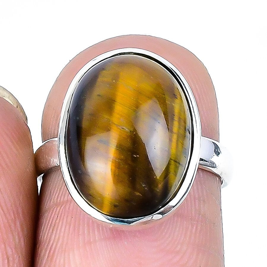 Sacral Chakra Tiger Eye Stone 925 Sterling Silver Statement Ring Jewelry US 6.5