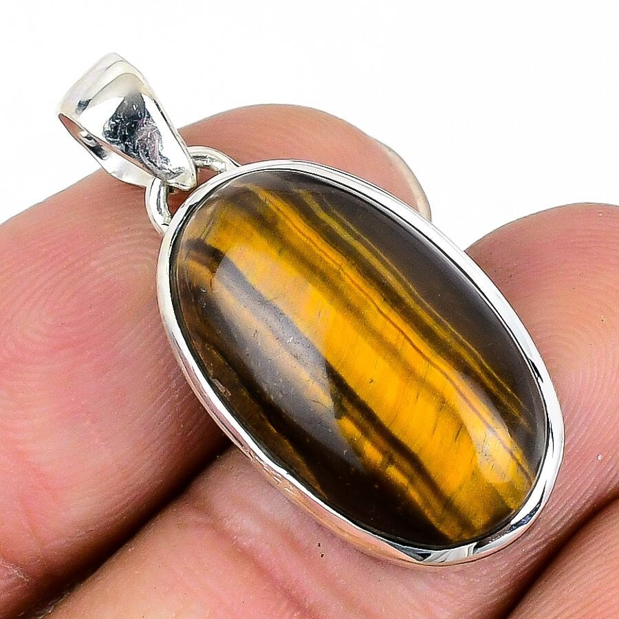 Sacral Chakra Tiger Eye Stone Ethnic Anniversary Wife Bezel Pendant 925 Silver