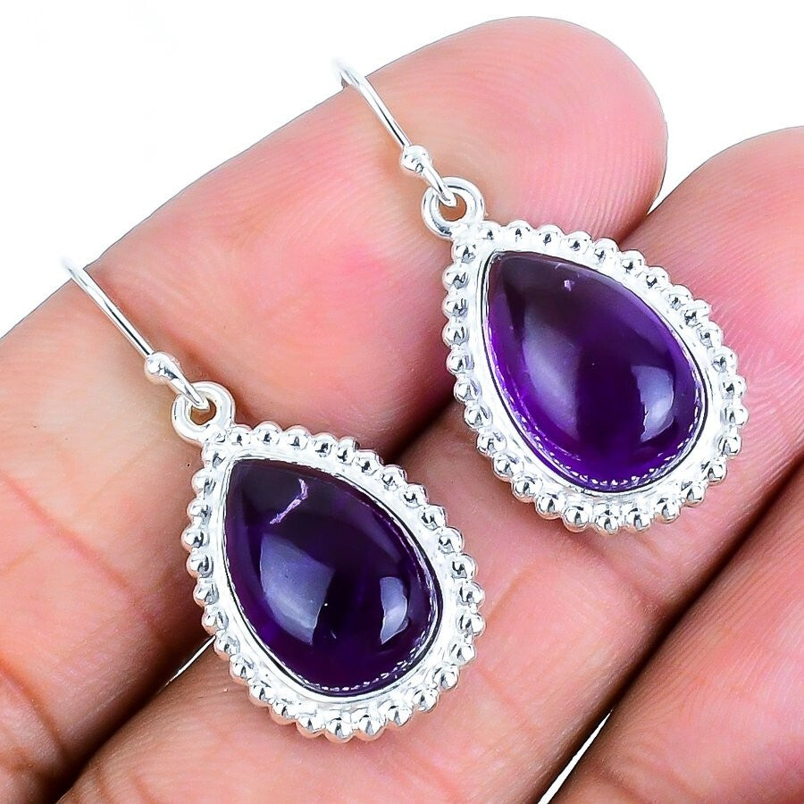 Sage Amethyst Gemstone 925 Solid Silver Drop Dangle Mothers day Earrings Jewelry