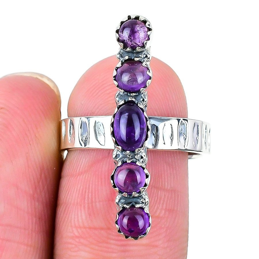 Elegant Sage Amethyst Gemstone Cluster Wife Ring Jewelry in