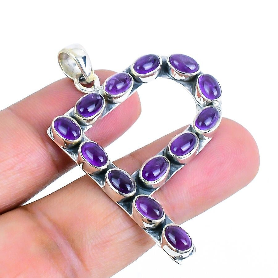 Sage Amethyst Gemstone Solid Silver Crown Chakra Wife Boho Handmade New Pendant