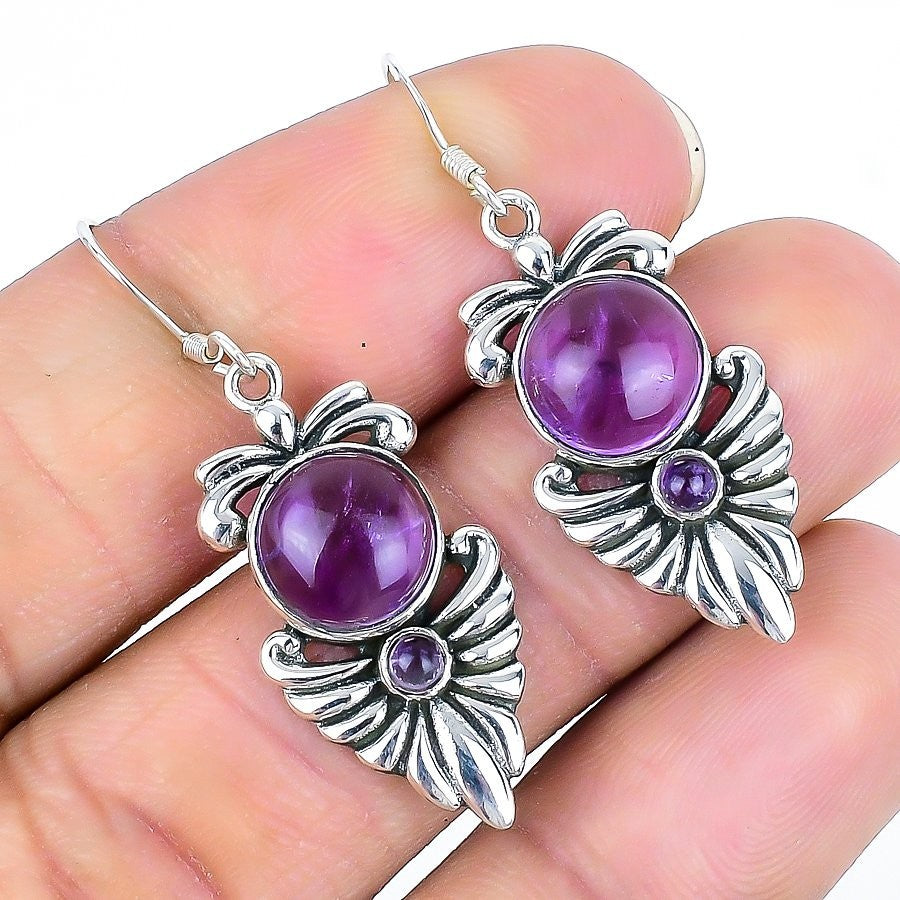Sage Amethyst Gemstone Solid Sterling Silver Mother Dangling Earrings Jewelry