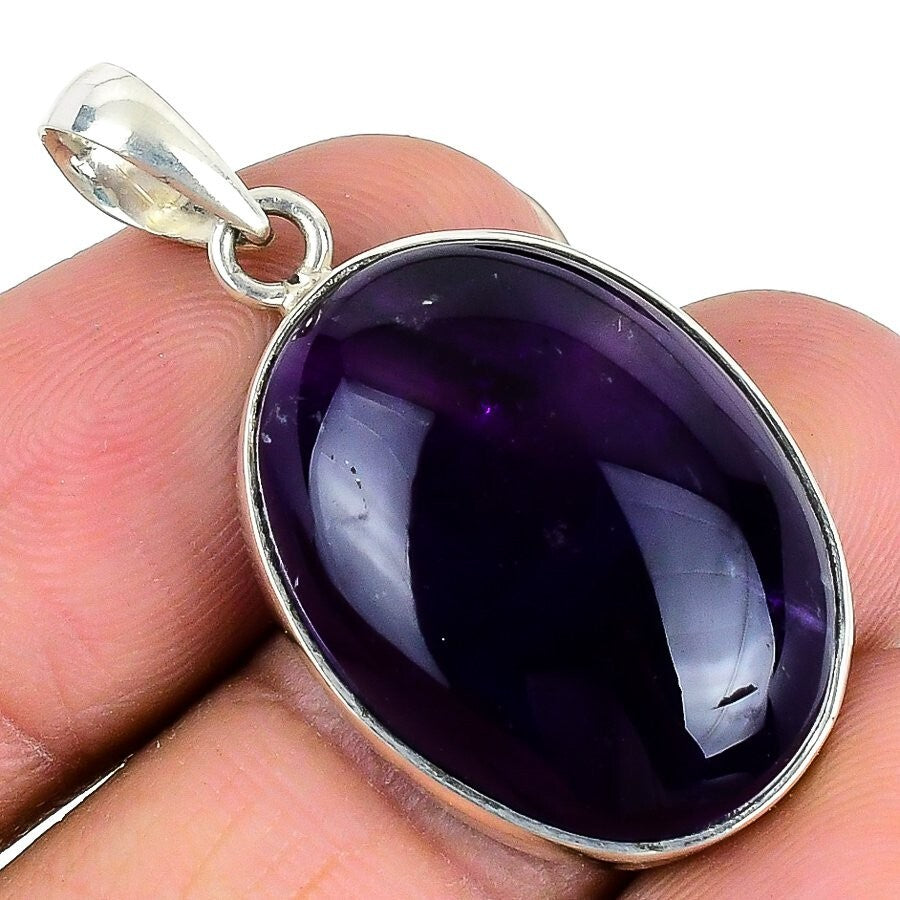 Sage Amethyst Gemstone Solid Sterling Silver Wife Handcrafted Bezel New Pendant