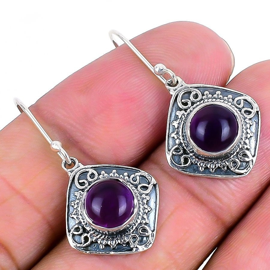 Sage Amethyst Gemstone Sterling Silver Boho Drop Dangle Sister Earrings Jewelry