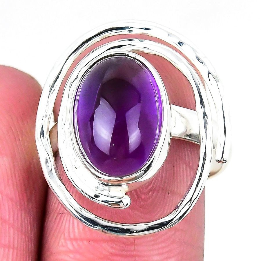 Sage Amethyst Gemstone Sterling Silver Ethnic Mother Cluster Artisan Ring Size 8