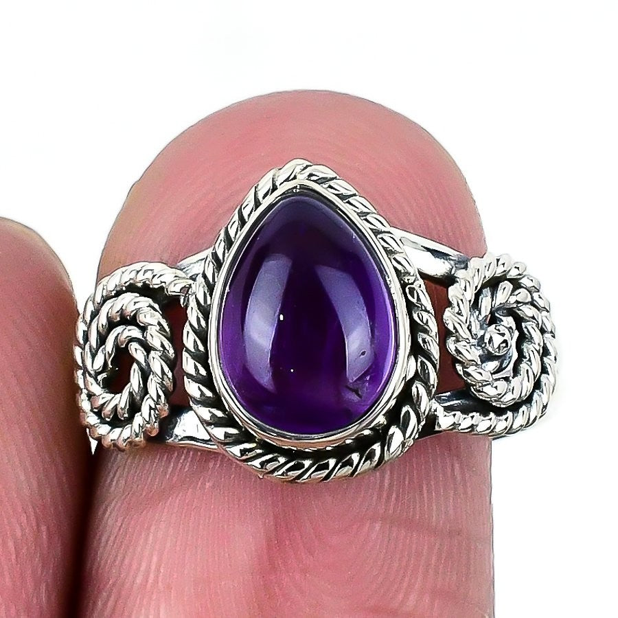 Sage Amethyst Stone 925 Silver Mother Statement Anniversary Ring Jewelry Size 8