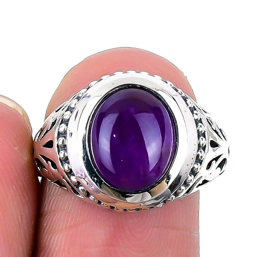 Sage Amethyst Stone 925 Silver Mother Statement Anniversary Ring Jewelry US 8