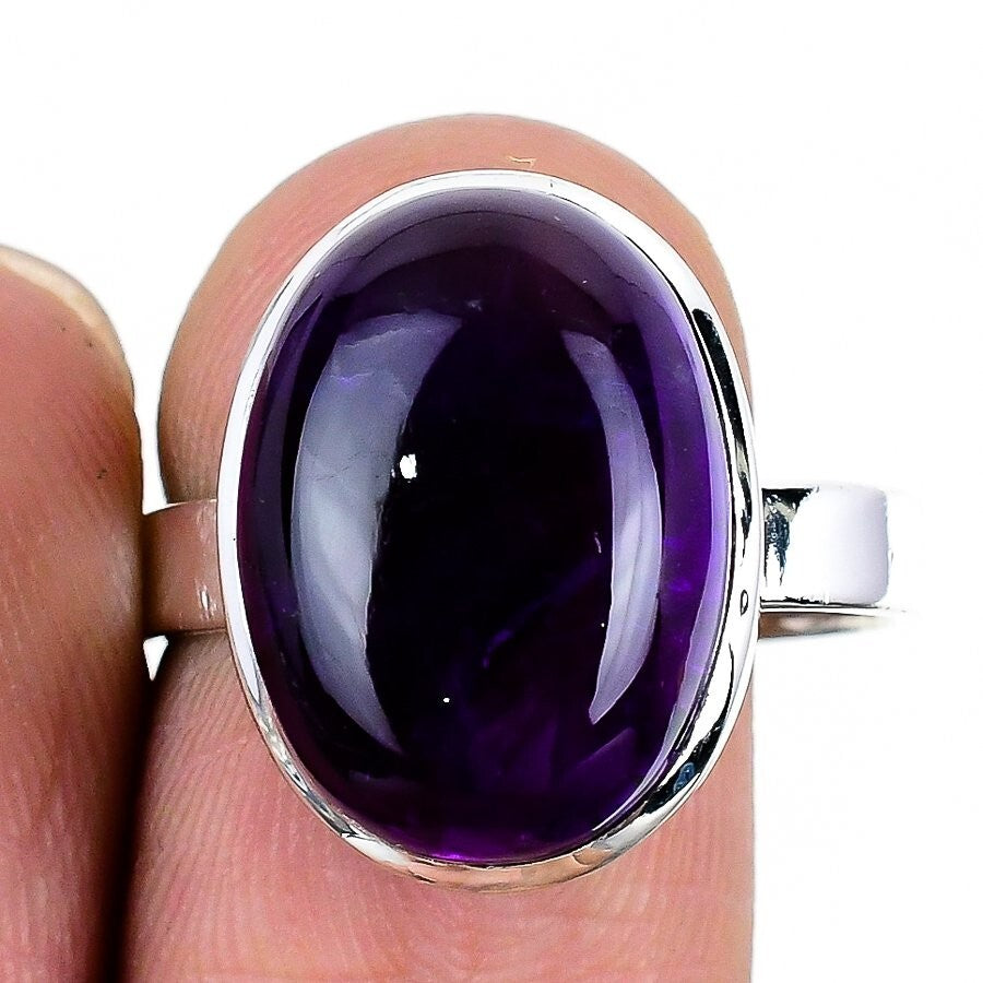 Sage Amethyst Stone 925 Solid Silver Ethnic New Statement Birthday Ring Size 9.5