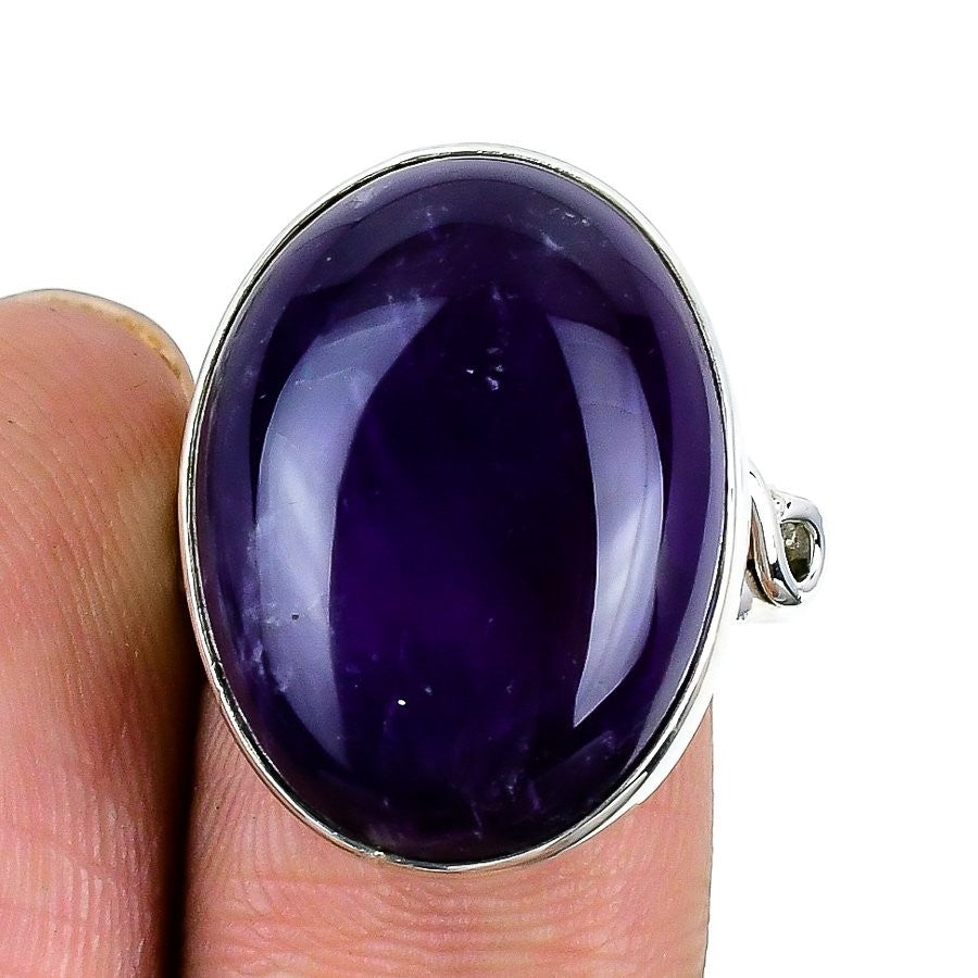 Sage Amethyst Stone 925 Solid Silver Unique Statement Boho Ring Jewelry Size 8.5