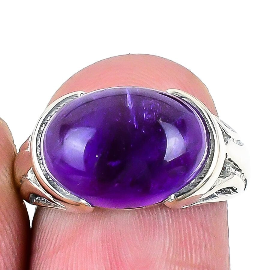 Sage Amethyst Stone 925 Sterling Silver Mother Statement Handmade Boho Ring US 6
