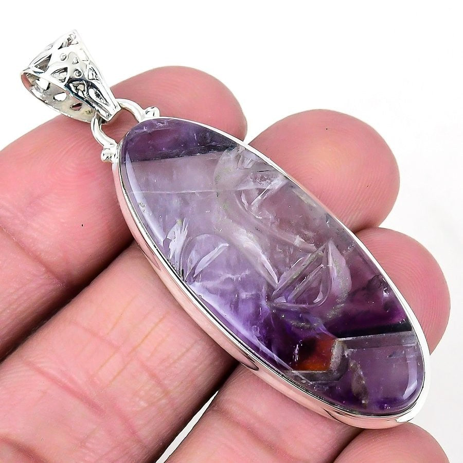 Sage Amethyst Stone Channel Set Ethnic Birthday Wife Pendant Jewelry 925 Silver
