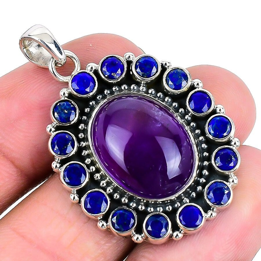 Sage Amethyst Stone Solid Silver Crown Chakra Artisan Handcrafted Unique Pendant