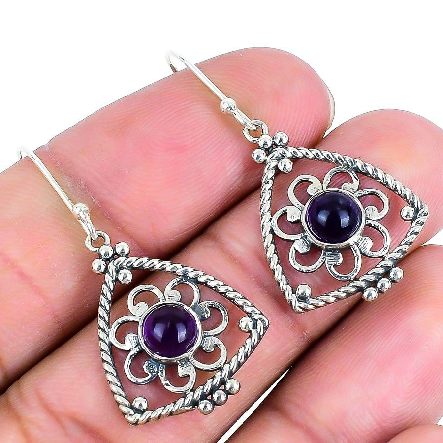 Elegant Sage Amethyst Stone Solid Silver Hook Dangle in 925
