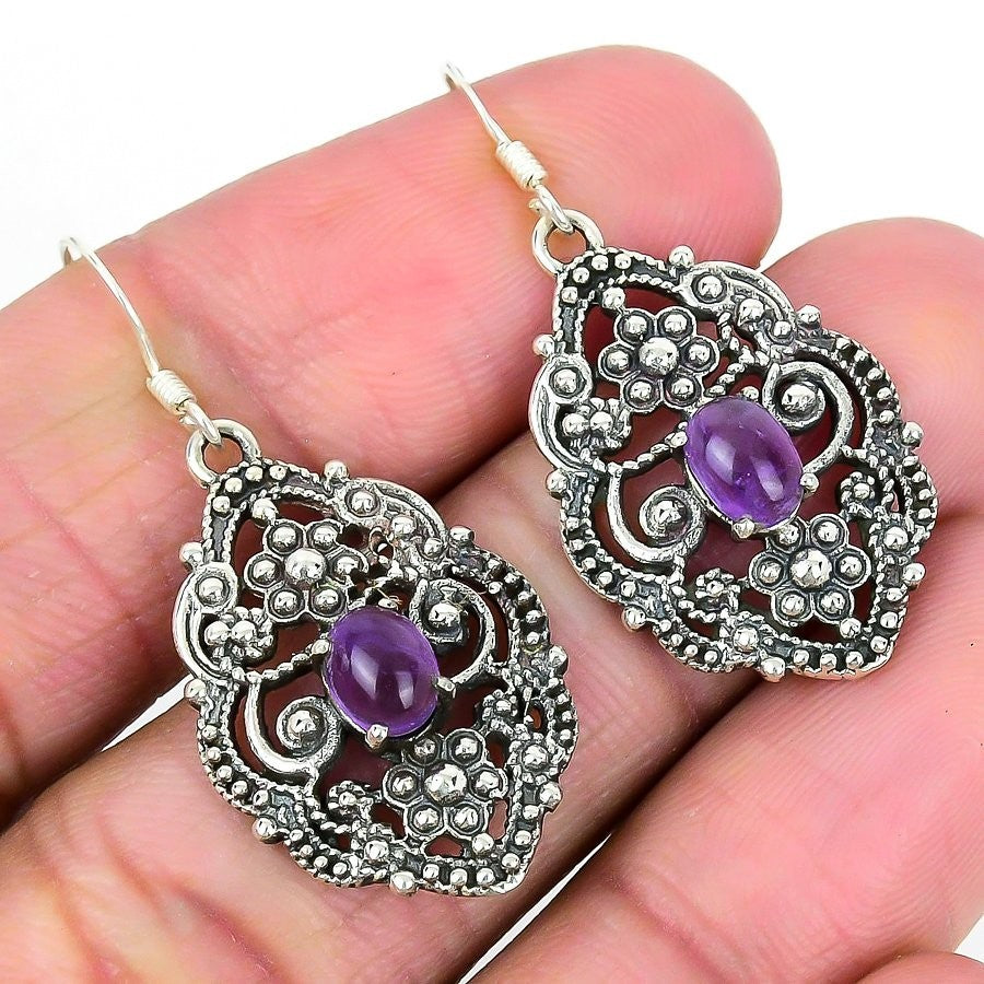 Elegant Sage Amethyst Stone Sterling Silver Anniversary Drop