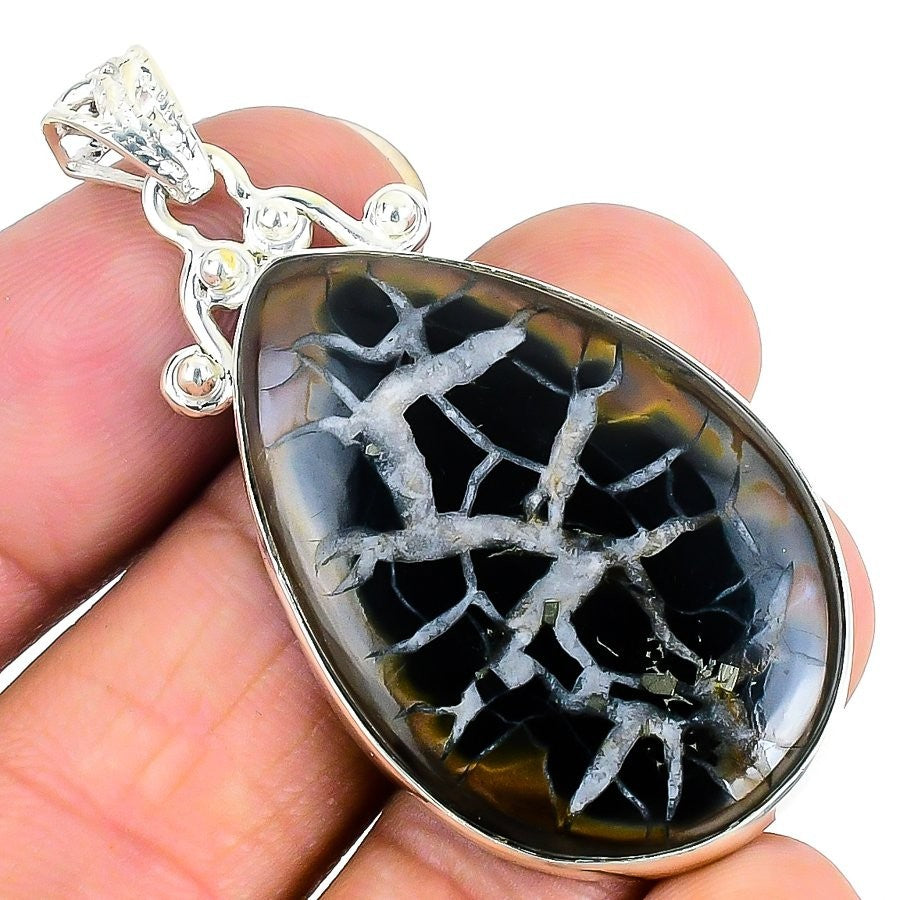 Septarian Gronuts Gemstone 925 Sterling Silver Unique Handcrafted Sister Pendant