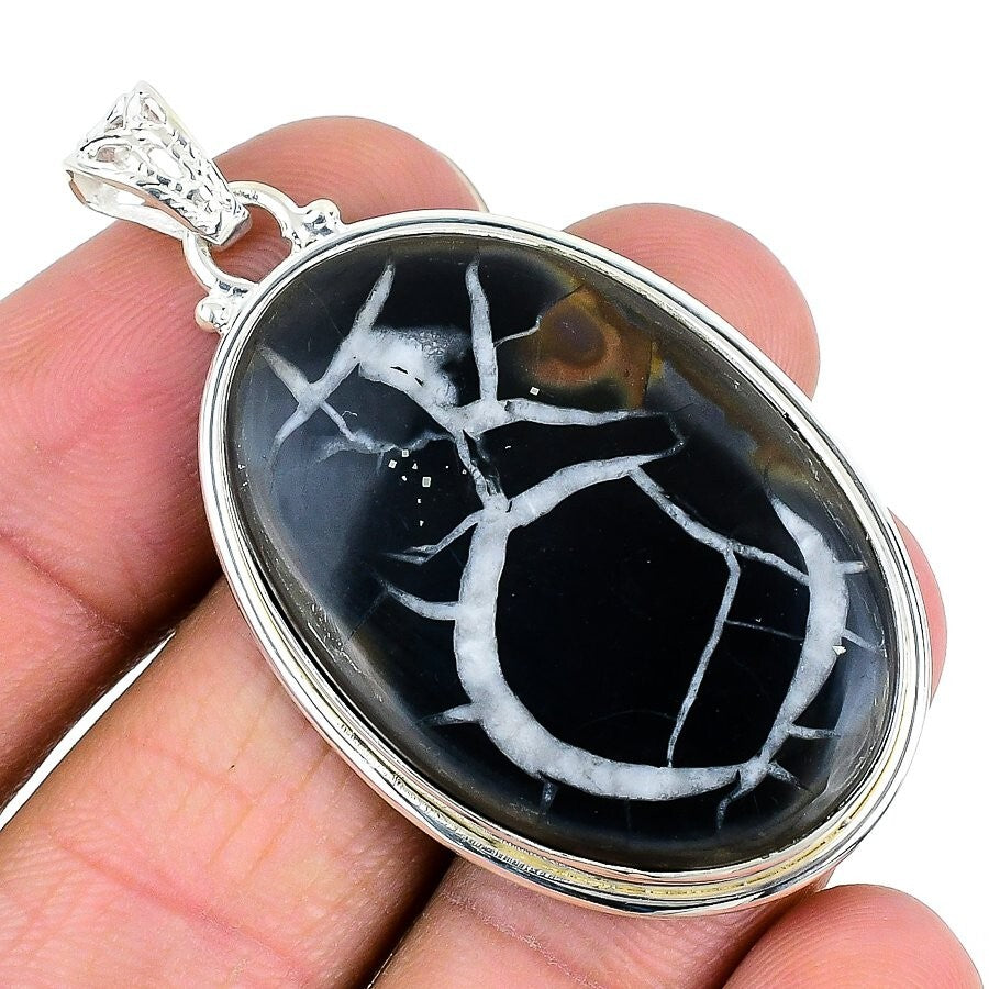 Septarian Gronuts Stone Wife Bezel Anniversary Artisan New Pendant Solid Silver