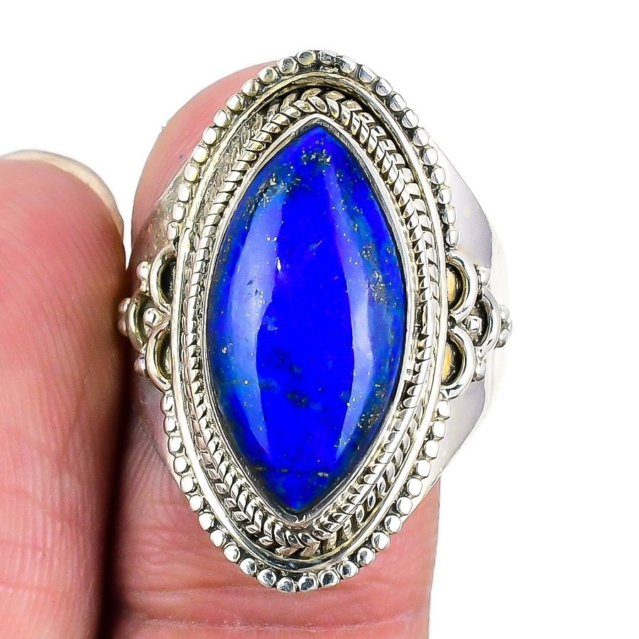 September Lapis Lazuli Gemstone 925 Sterling Silver Statement Ring Jewelry US 10