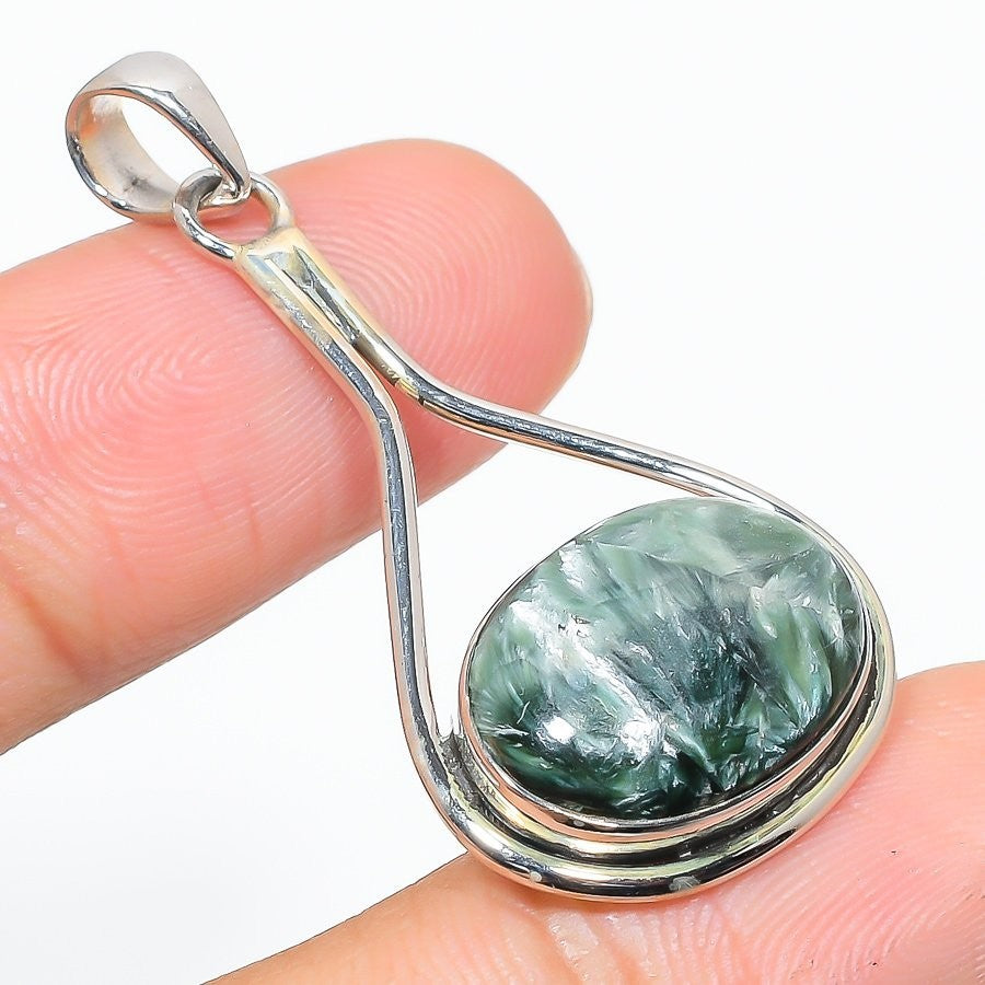 Elegant Seraphanite Stone 925 Silver Mother Handcrafted Eleg